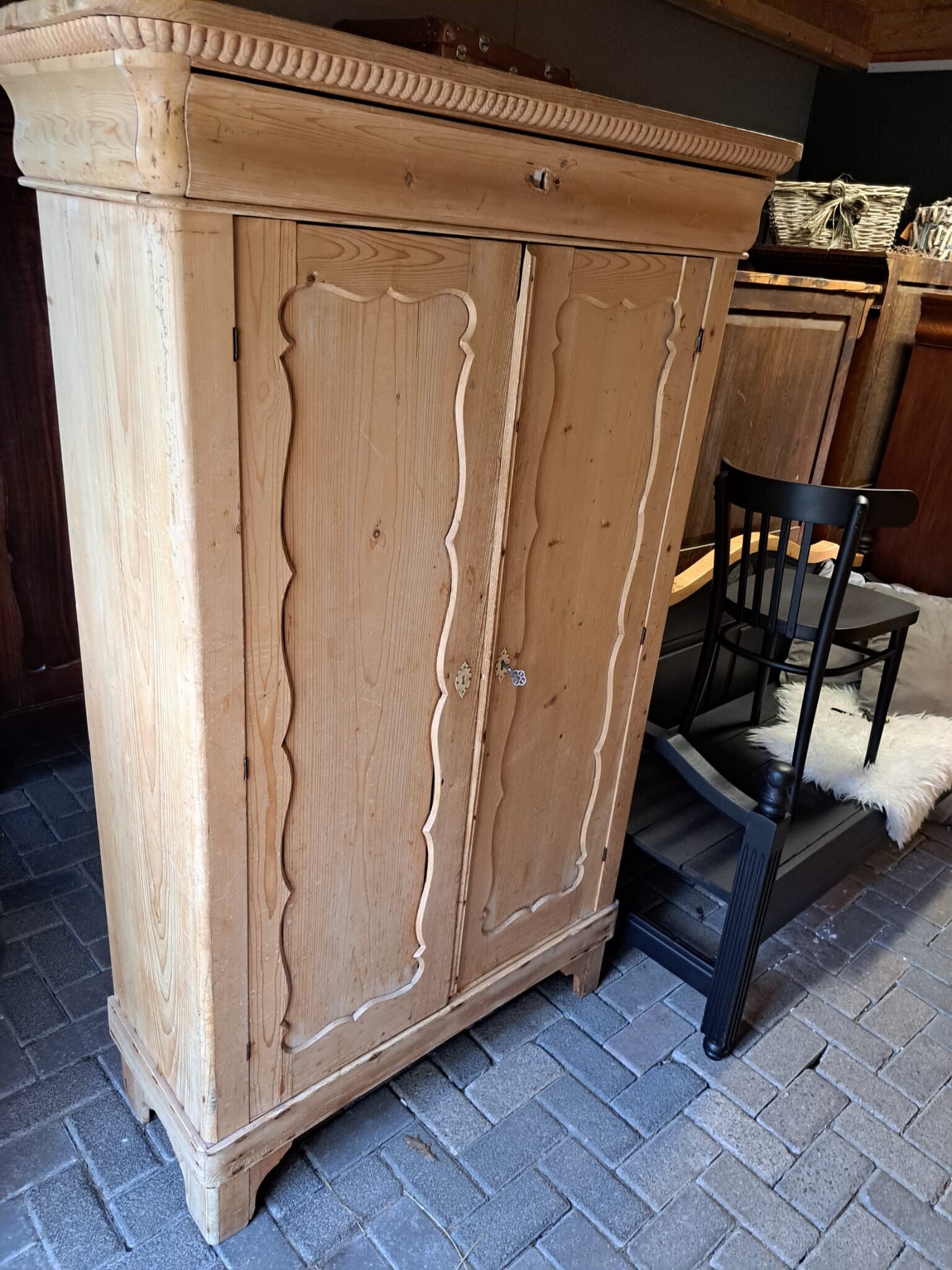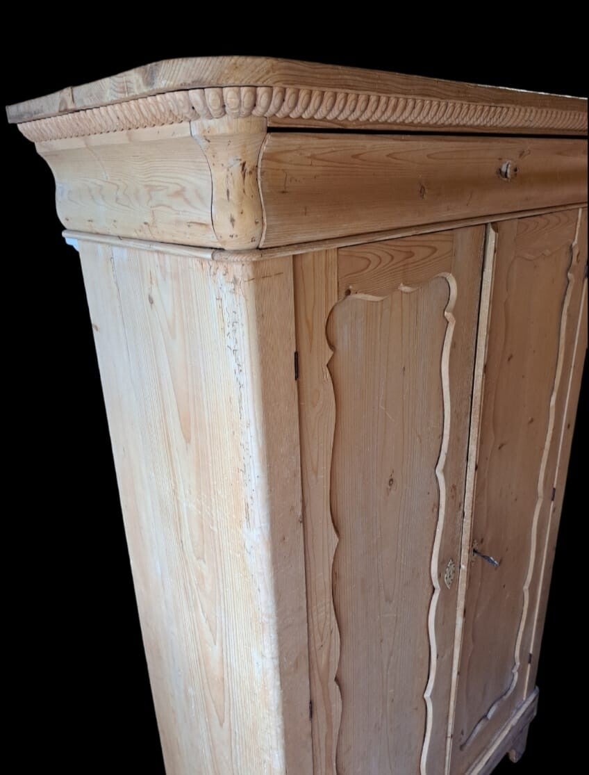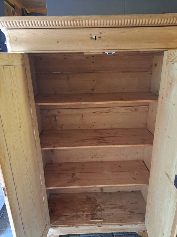 Geloogde biedermeier meidenkast, de kast sluit goed , voorzien van legplanken en een grote lade bovenin de kast