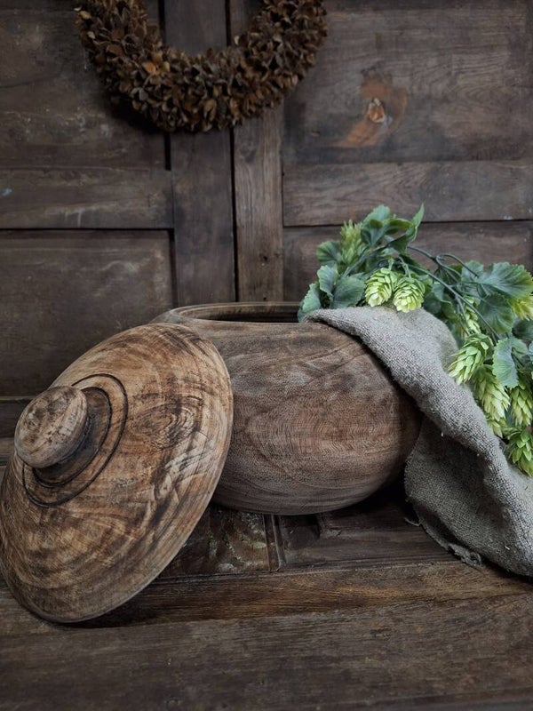 Ronde houten pot met deksel