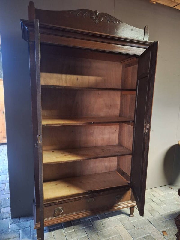 Antieke linnenkast , linnenkast met spiegeltjes , de kast is voorzien van legplanken. De kast sluit netjes met een goed draaiend slot incl. sleutel.
