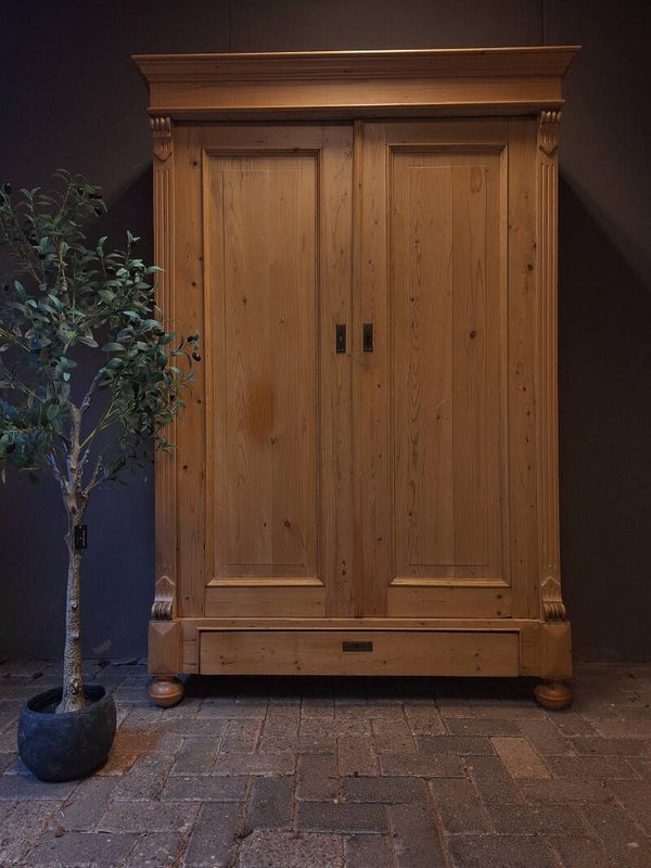 Grote linnenkast , nette grote linnenkast . De kast verkeerd in originele staat. Voorzien van legplanken en een grote lade. De kast sluit netjes met een goed werkend slot.